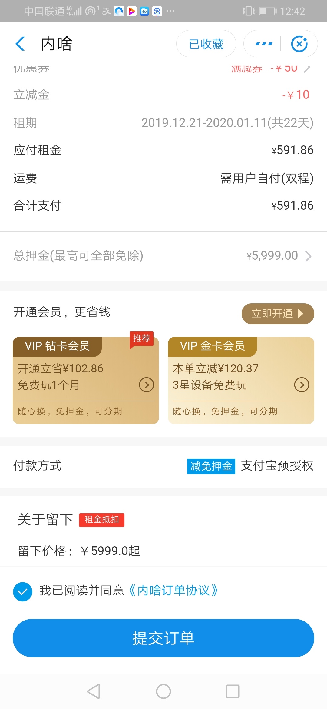 A-sweet 发表于 2019-12-12 10:14 看你多少免押额度啊,越多肯定选择越好的
