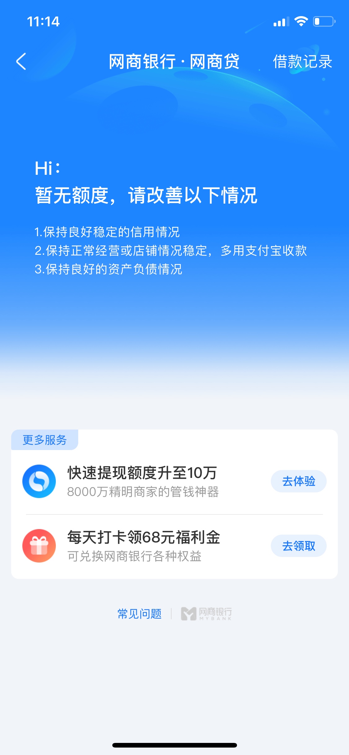 太难了,刚给的网商贷,用一次就没了