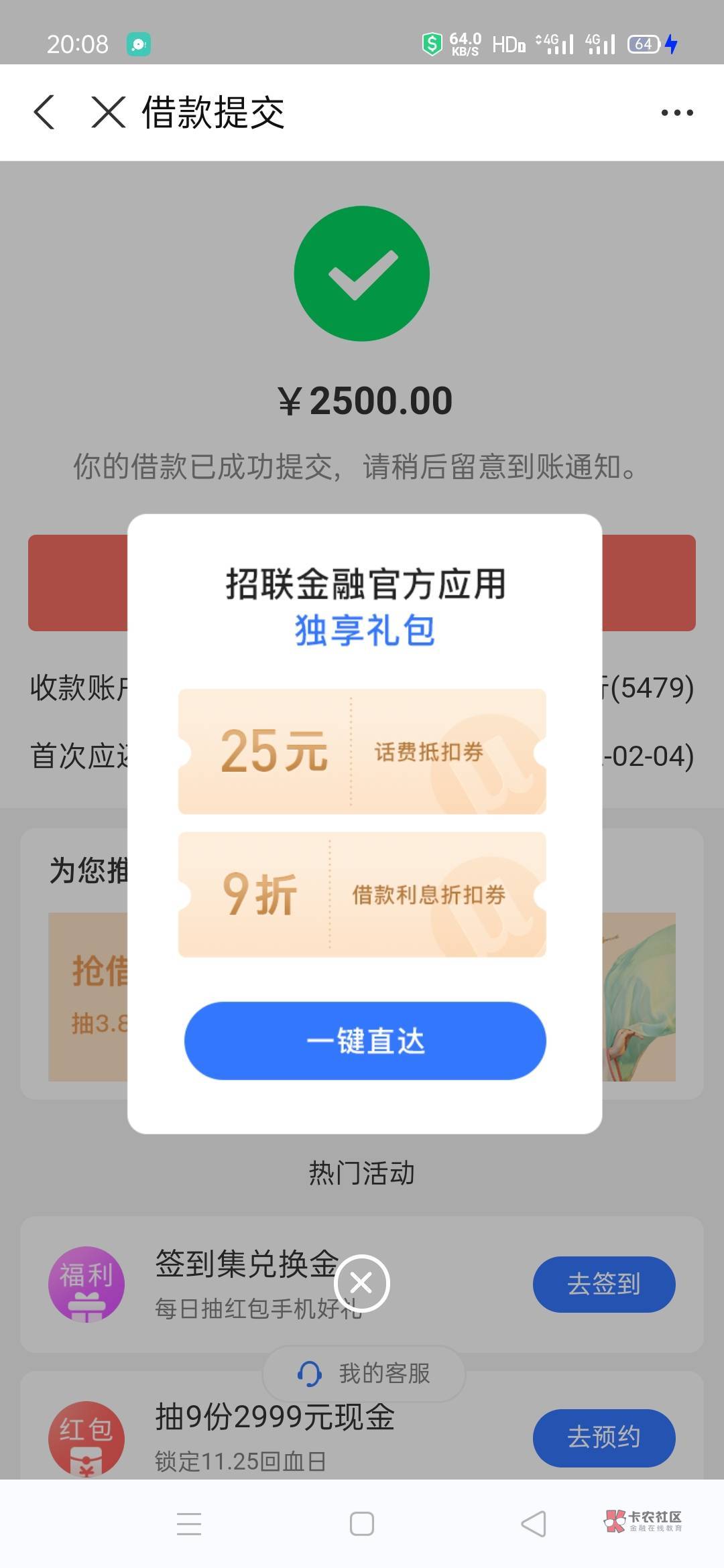 上贴已经阐述过本人已刚上岸,该还清的平台还一个删一个。刚打开支付宝,忽然想起里面的招联金融,曾经也借过,有2800额度,但是还清已经被冻结两年了,原来也每个月进去看过,隔半年解冻一次,但点进去都是直接拒!想想也上岸了,无所谓,都冻结拒两年了,点着玩,竟然……直接过直接秒到,从点提交到账,十秒钟!曾经要救命时一直拒一直冻结,两年了!现在不需要了点着玩,还给我秒下了!真是有心栽花花不开,无心插柳柳成荫,搞不懂了