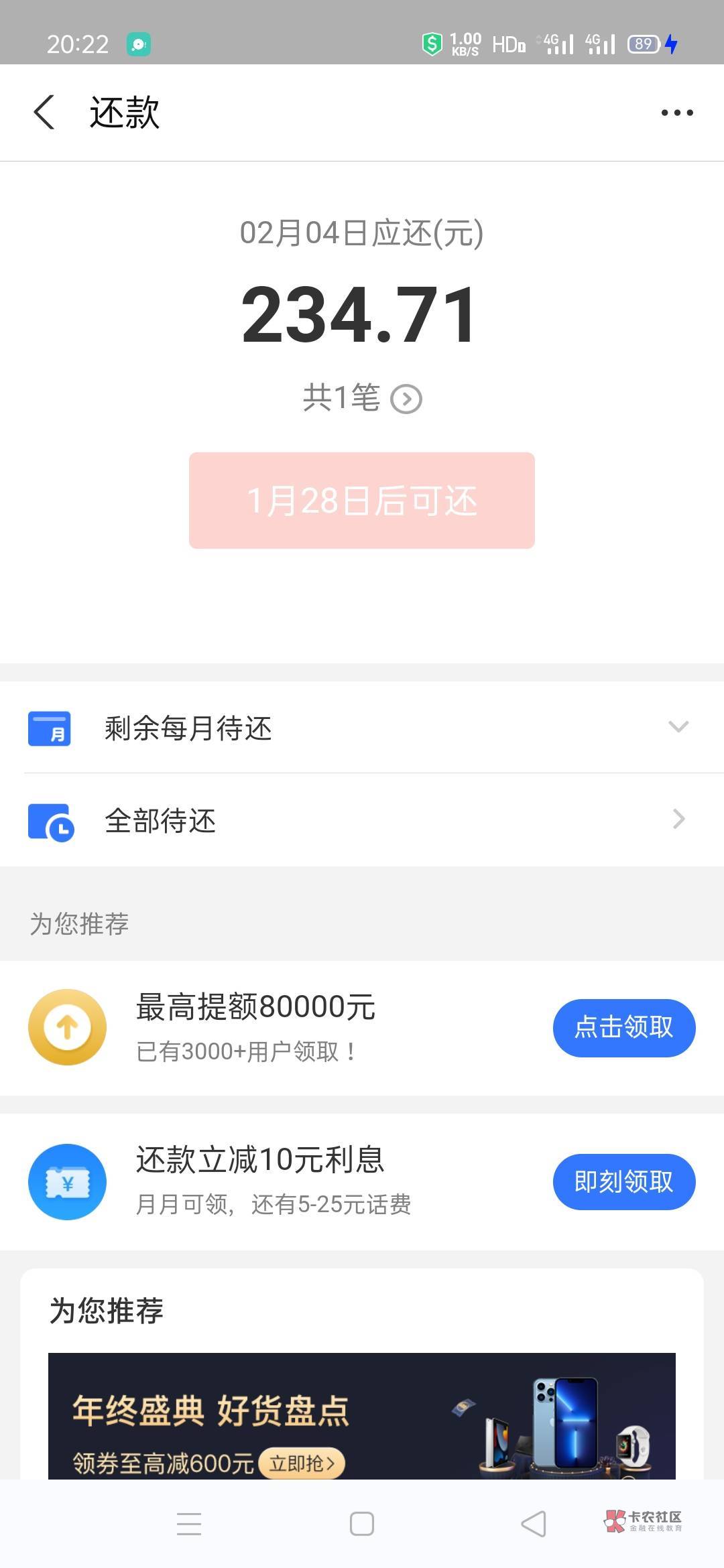 算了!借了2500分12期,一共要还2800。下个月发年底奖金了再一起还进去,300块当消费了