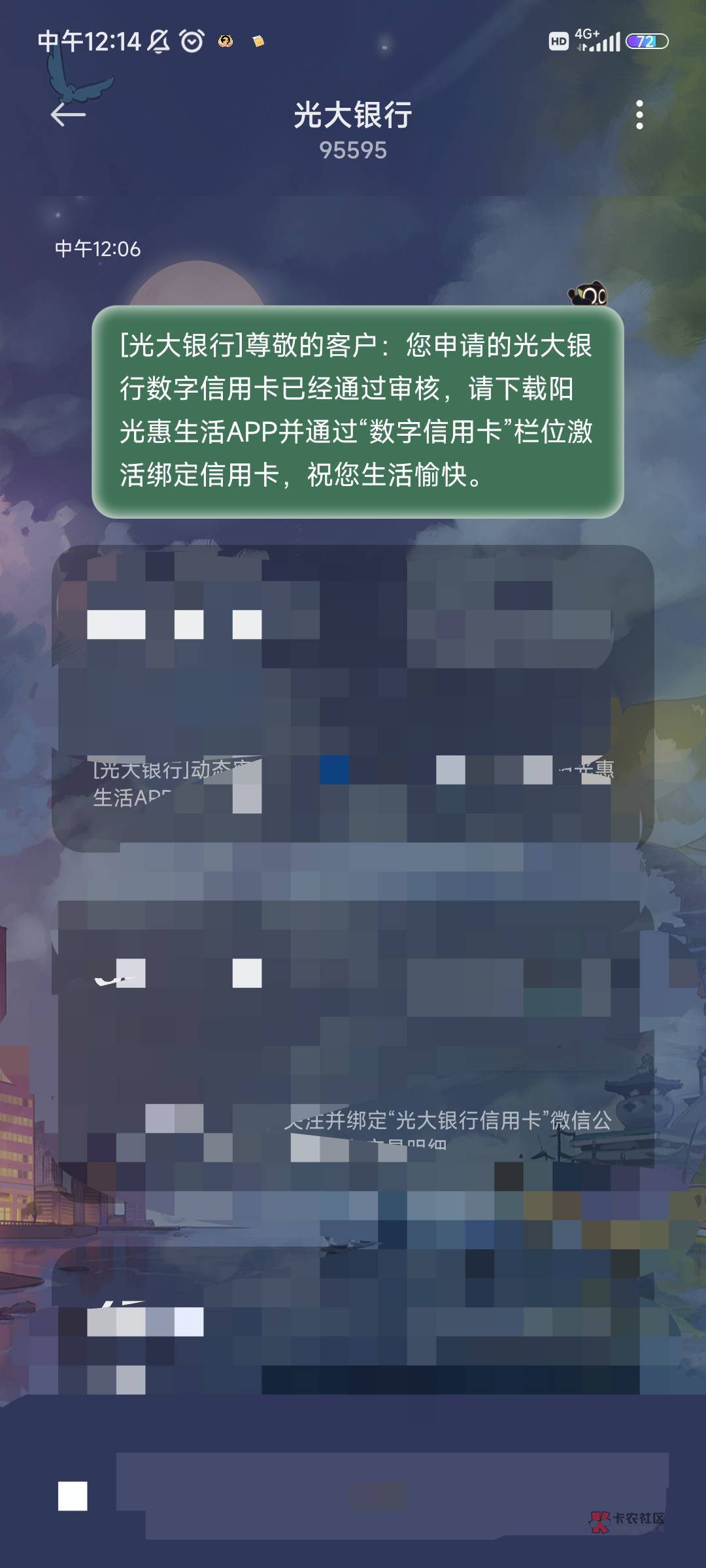 光大信用卡面签中。