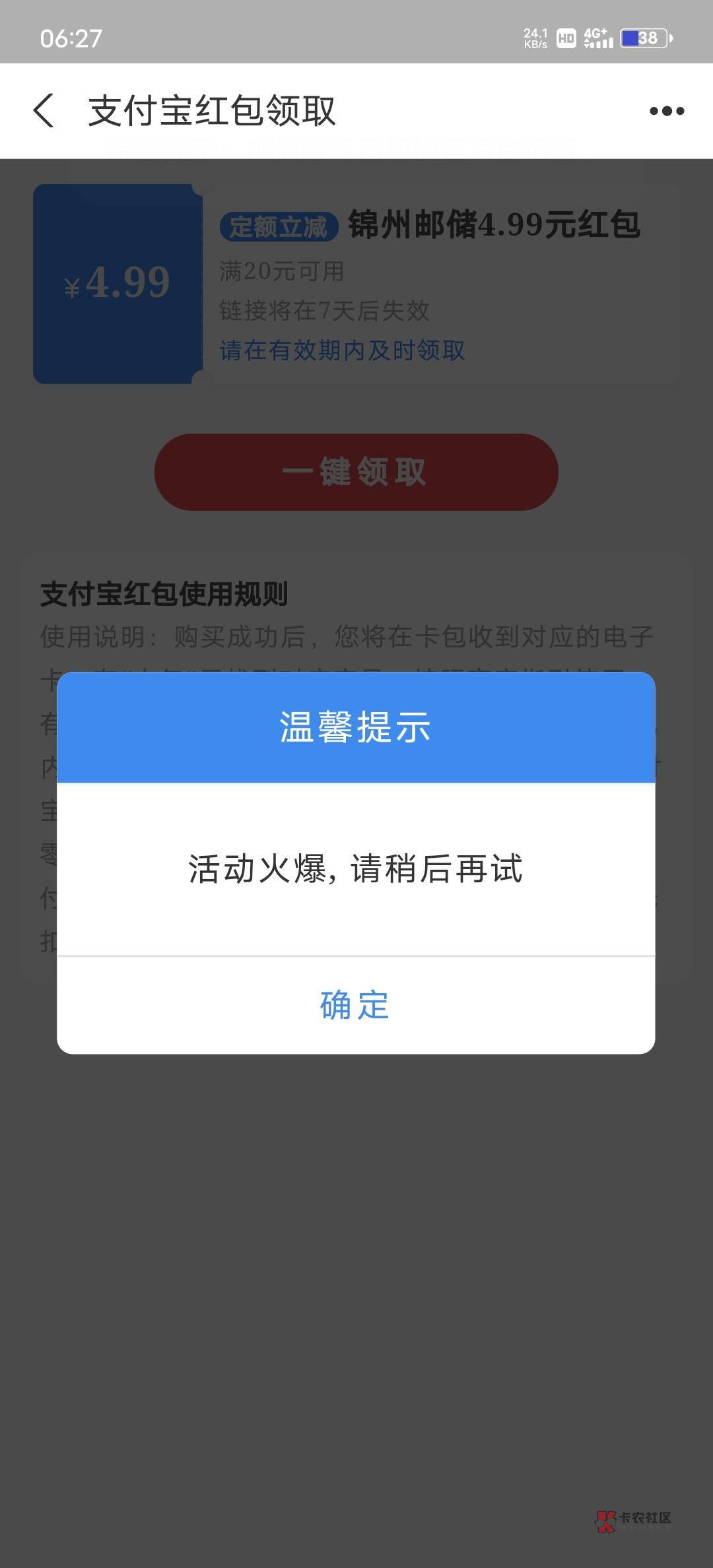 辽宁邮储码子,随便领20-4.99的支付宝通用红包,亲测不限卡
