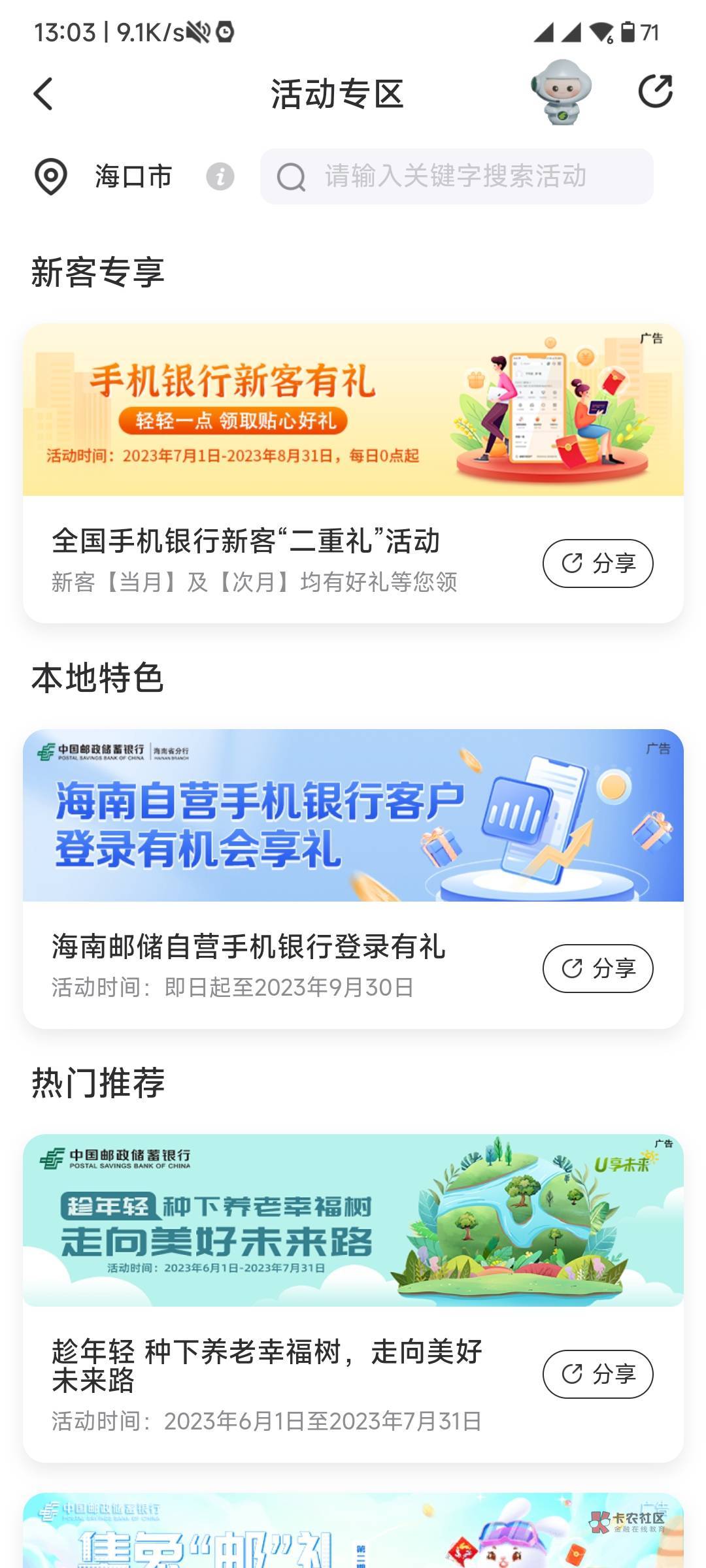 撸小小羊毛 发表于 2023-07-09 13:09 我也不知道咋回事,点开就是海口的,就抽奖了