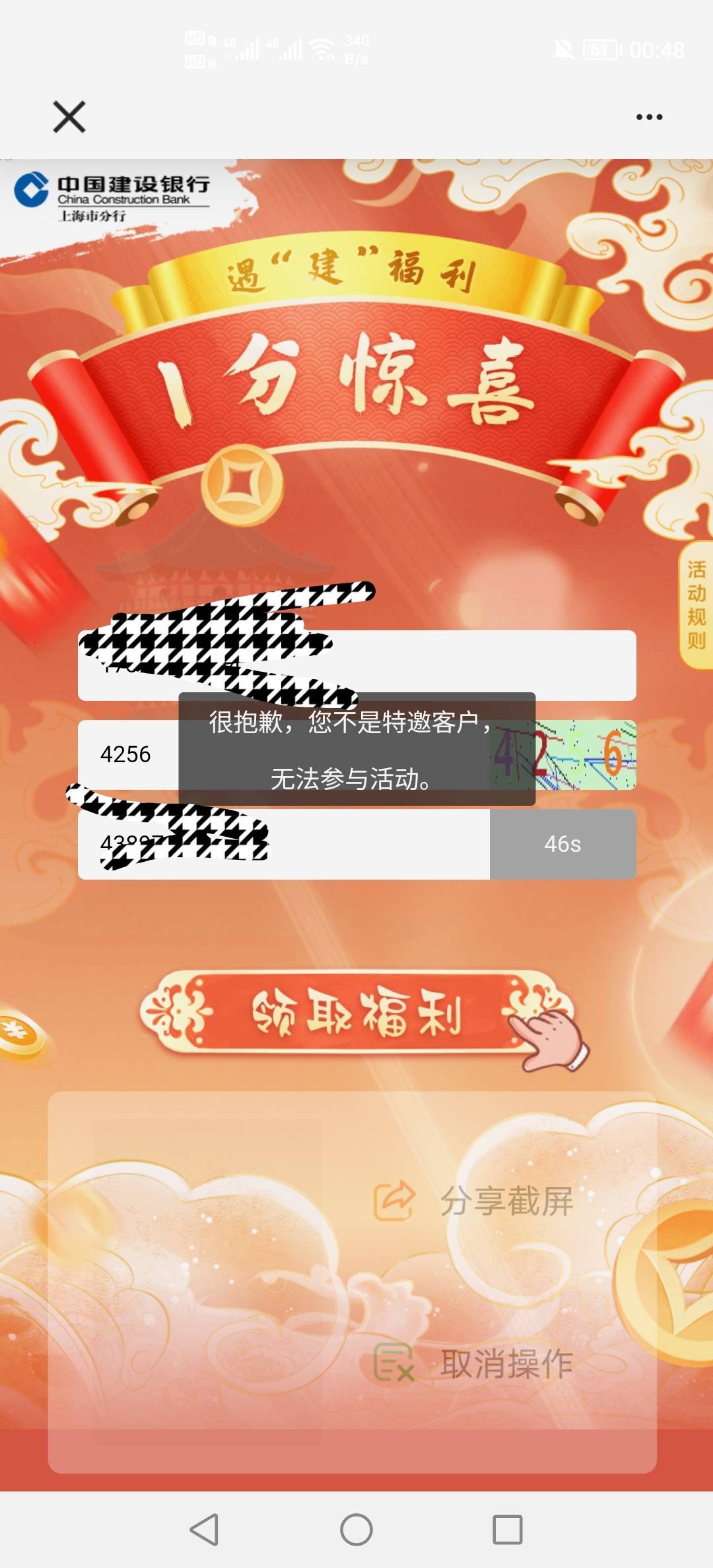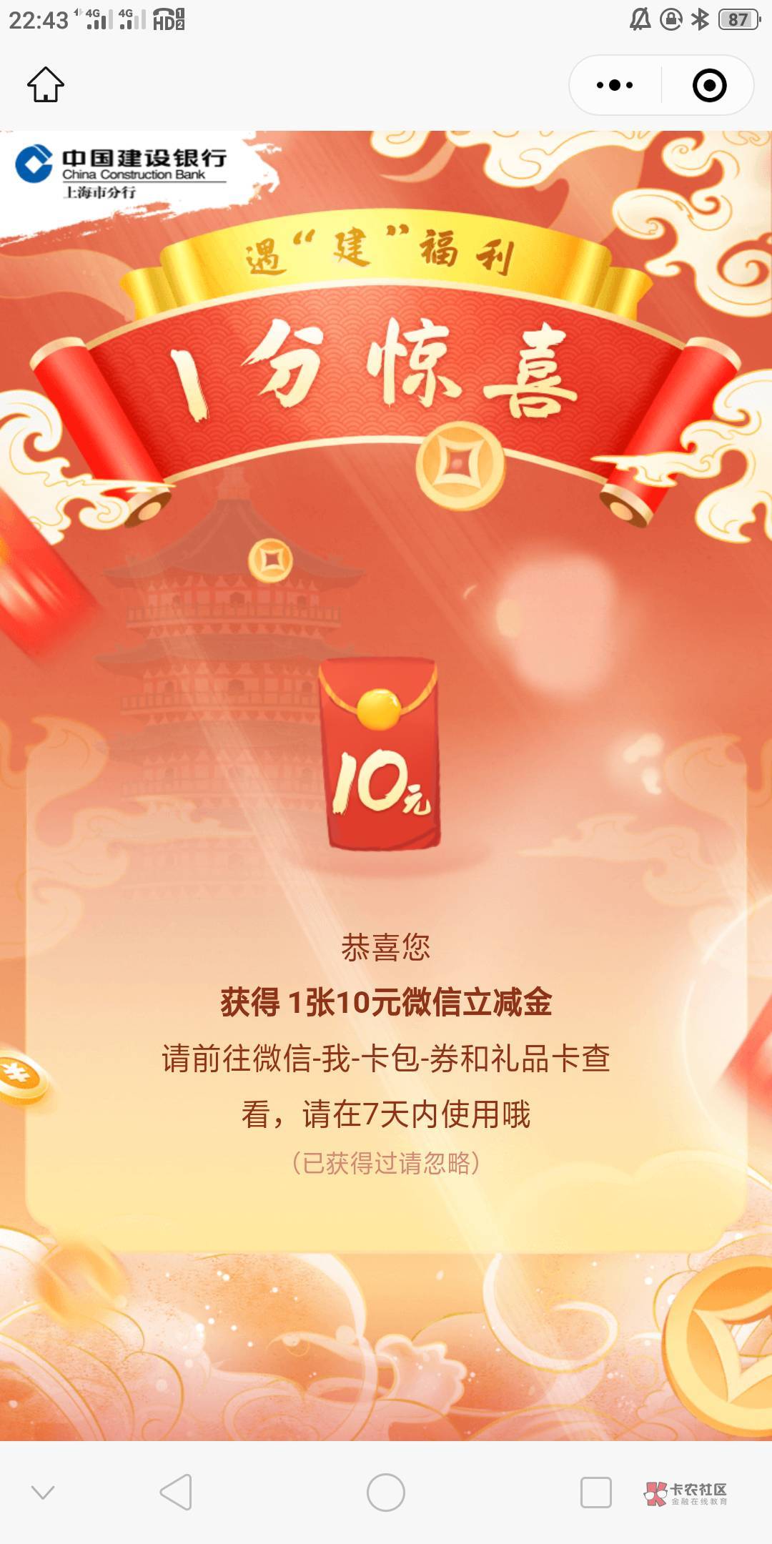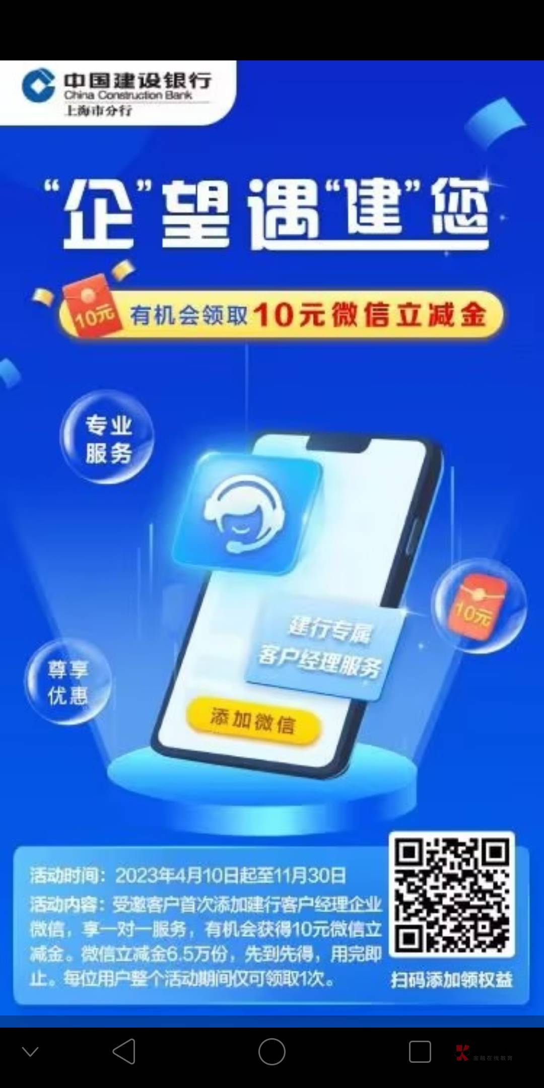 上海建行添加客服领取10,看看你们能不能领取