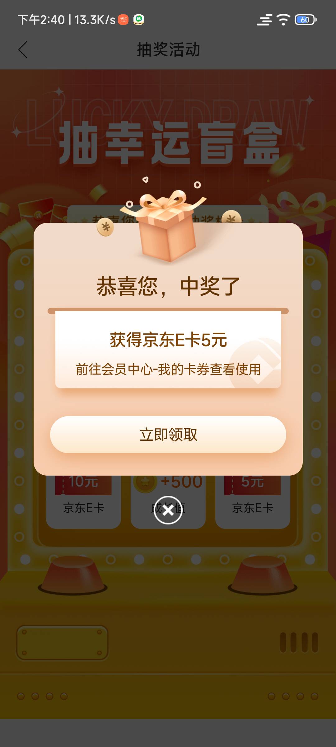 中国建设银行公众号-悦生活-抽100元购物卡