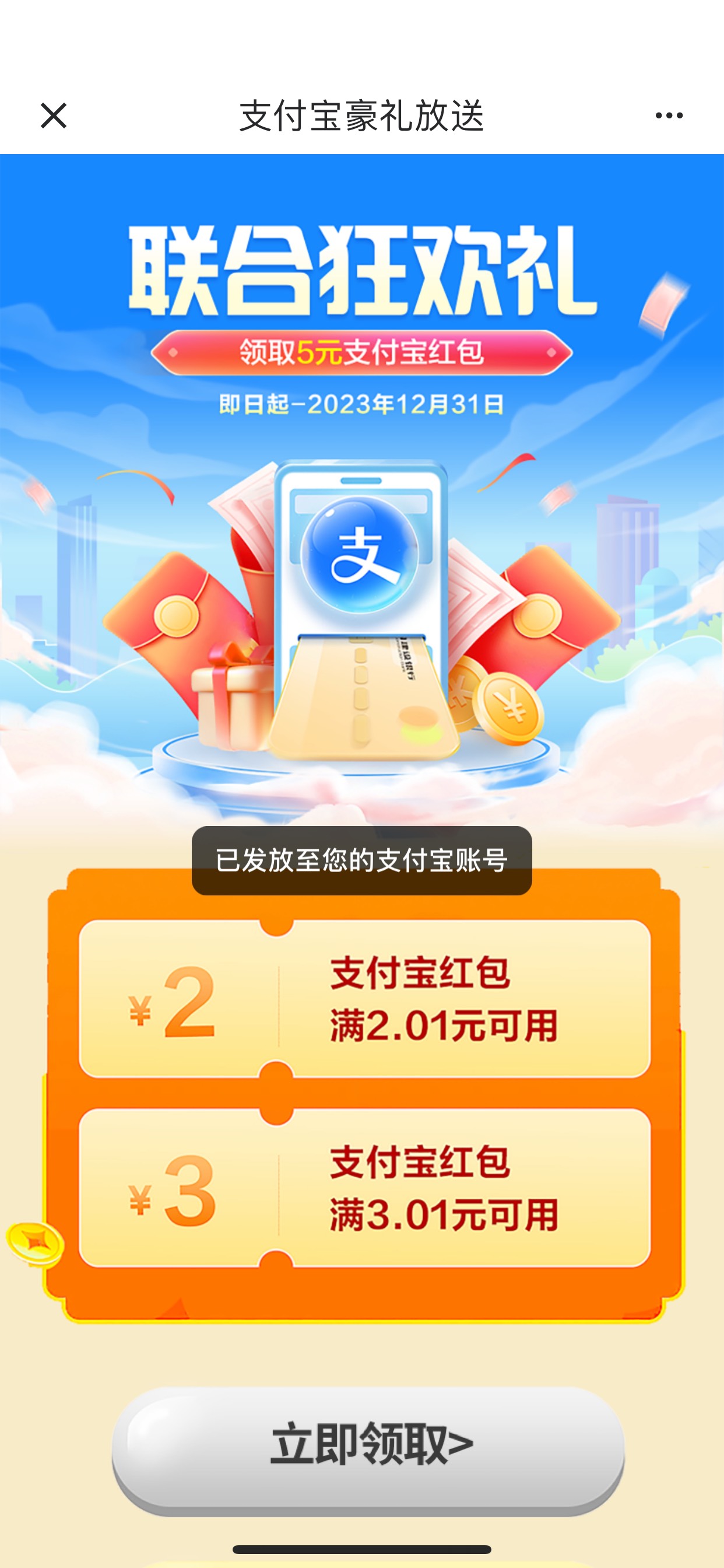 建行惠省钱支付宝那个5,之前领不了的,现在可以领了