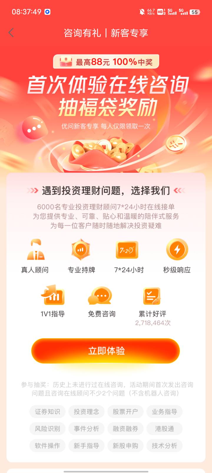中信建投证券蜻蜓点金app咨询有礼,体验咨询领取福袋奖励