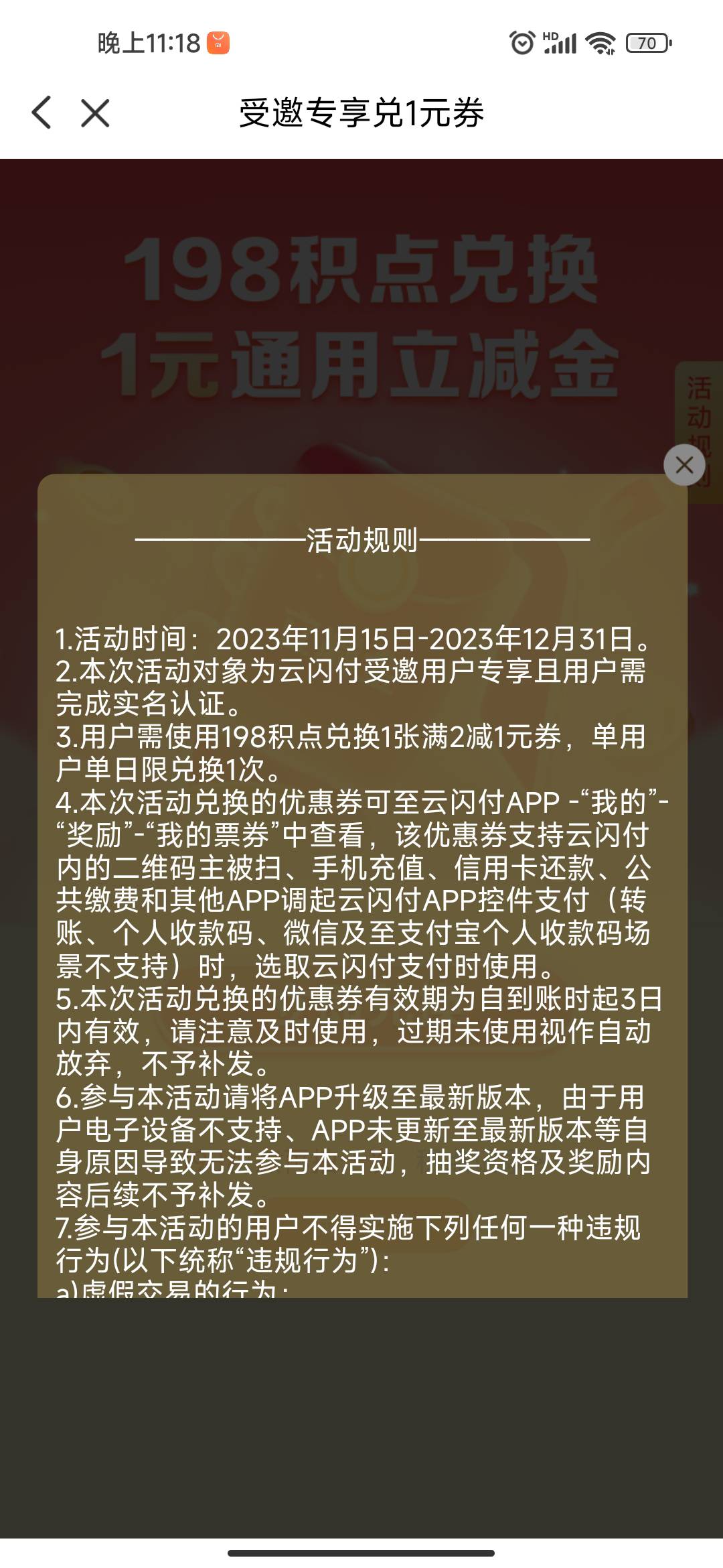 云闪付首页横幅天天立减1元,受邀专享积点兑换通用立减金