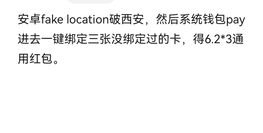 天下jo 发表于 2024-04-04 16:21 要fake那个软件,定位西安,打开小米手机钱包,打开mi pay绑定三张卡